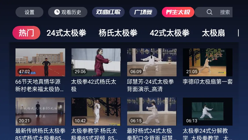 4. 提供海量广场舞教学视频,涵盖云裳广场舞、糖豆广场舞等热门合集,还有中老年保健操、养生太极等健康内容。