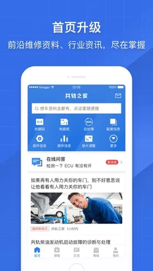 共轨之家App是商用车维修领域专业平台,提供故障诊断、技术资料查询、在线学习培训及远程支持等功能,受广大维修人员和车主喜爱,能助力提升维修技能与行业效率。