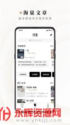 其海量诗词资源涵盖中外名作,还支持用户上传原创,满足不同需求。