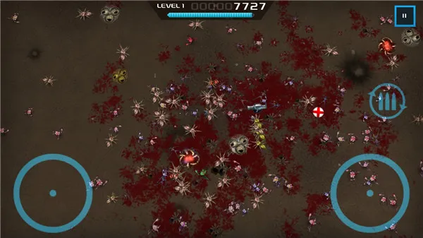 《血腥大地》是一款超刺激的俯视双摇杆闯关射击游戏。在游戏里,你能运用各种厉害的武器、宝物和升级技能来战胜敌人。它画面绚丽,战斗超血腥,让你体验枪林弹雨的快感。操作简单,左摇杆控制角色移动,右摇杆把握射击方向。游戏模式多样,闯关模式能不断解锁新武器道具;生存模式可获取武器宝物技能挑战怪物得经验值;突围模式考验极限,一开始就用无限弹药自动步枪面对众多怪物;还有隐藏的打字模式和训练模式。这里有百种枪械,从最开始的单发小手枪,到后来的自动步枪、高斯枪、重机枪,甚至核弹等。怪物也会进阶,从最初的小爬虫到虫巢、尸爆蜘蛛等。地面随机掉落的道具还有加速、迟缓、治疗等特殊效果,助你解围。快来下载体验这酣畅淋漓的射击游戏吧!