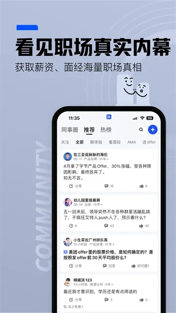 还能提前了解公司真相,排雷避坑,求职跳槽更踏实,是职场交流的优质平台。