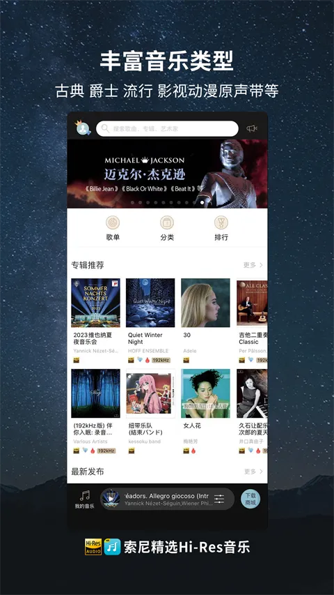 1. 索尼hires音乐平台汇聚数万首正版授权的无损音乐资源,涵盖多种风格,能让用户沉浸于听觉盛宴。