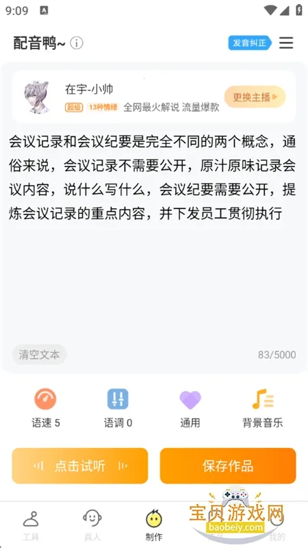2. 操作简单,输入文本即可一键配音,还能自定义调节语速语调,插入停顿。