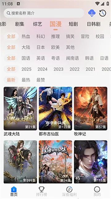 4. 界面设计简洁直观,搜索功能强大,输入剧名可快速查找,分类浏览功能提升查找效率,支持多种清晰度选择,最高可达蓝光画质。