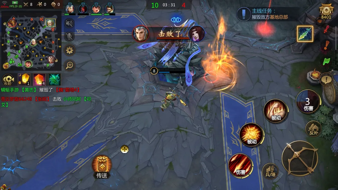 3. 所有英雄都有三个主动技能、两个被动技能和一个召唤师技能,采用左侧虚拟摇杆,右侧技能按键,玩过横板游戏便能轻松上手。