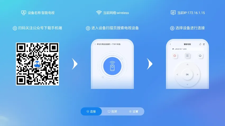1、连接体验超棒,按照简单提示就能快速与设备连接,还能自动识别电视机型号,无需手动搜索,轻松实现对多种电器的遥控。
