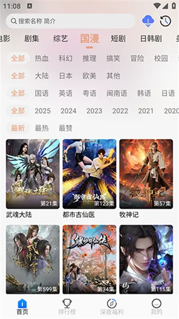 4. 界面设计简洁直观,搜索功能强大,输入剧名可快速查找,分类浏览提升查找效率,还支持多种清晰度选择。