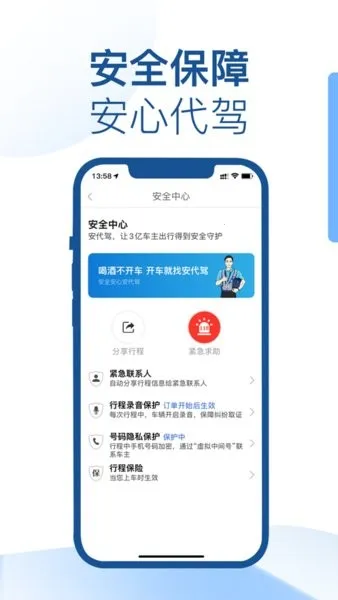 4. 设有200万意外险代驾险等保险,为司机与车主保驾护航,让使用更放心。