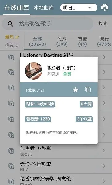 4. 无需繁琐注册步骤,无需 root,纯绿色安全可靠,免费就能演奏 400 多首歌曲,操作简单易上手。
