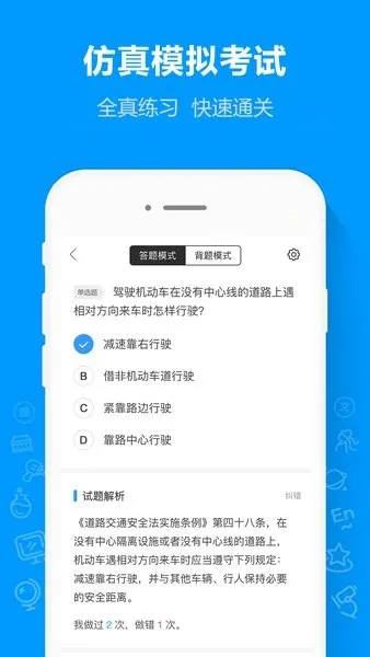 2. 提供多种做题模式,答题、背题、顺序练习、随机练习任你选。