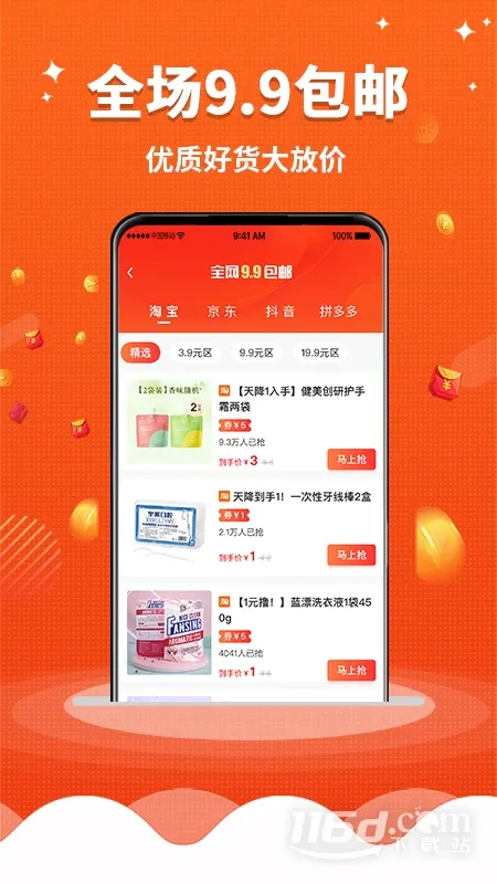 2. 购物便宜,领取优惠券网购超实惠,9块9包邮好物还便宜。