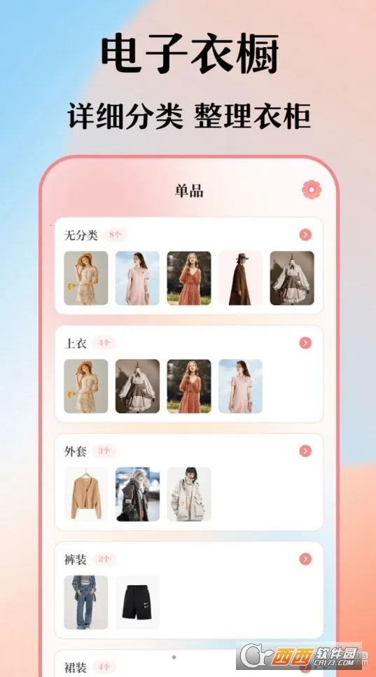 3、快速整理服装款式,方便快捷地管理您的衣柜。