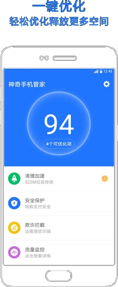 3、支持一键深度清理缓存与垃圾文件,同时具备省电模式,在低电量下仍可延长手机使用时间。