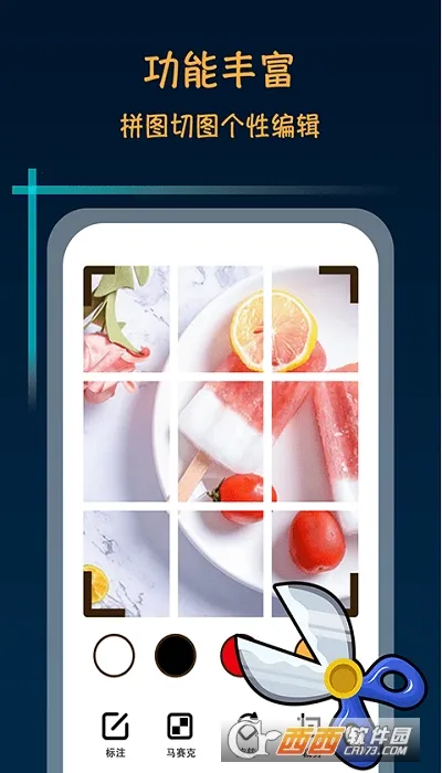 3. 具备多种图片编辑工具,九宫格切图、台词拼图等,3秒完成裁剪,满足社交发图需求。