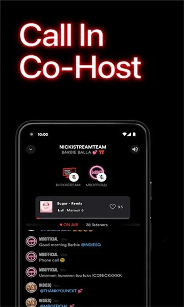 3、软件特别允许听众在直播中聊天和互动,这意味着用户可以在享受音乐的同时与他人实时交流,增强了社交属性。