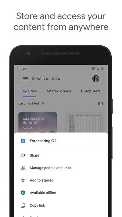 谷歌网盘是谷歌官方推出的强大网盘存储软件,界面简洁,空间大,功能丰富。能自动分类文件,支持多种搜索方式,有光学字符识别等特色功能,还方便文件共享与备份,跨平台兼容多设备。