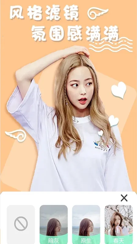 4. 内置多款自拍滤镜,为自拍添加不同氛围,一站搞定化妆修图滤镜等美颜需求,还集合各种风格贴纸。