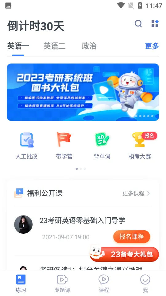 4. 软件特色丰富,图书礼包覆盖全科,模考大赛还原机考,词汇速记、长难句攻坚等功能助力备考。