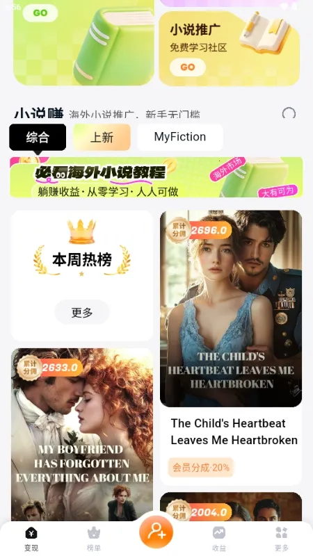 2. 多样变现渠道并存,推小说、剪短剧等都能赚取推广佣金,还有拉新推广计划,可拓展用户资源获收益。