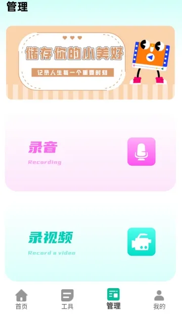 4、点击管理,可使用录视频等功能