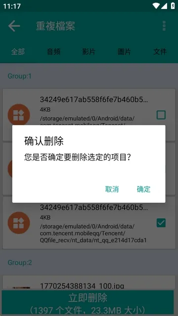 4、扫描出来的结果,点下面的立即删除。