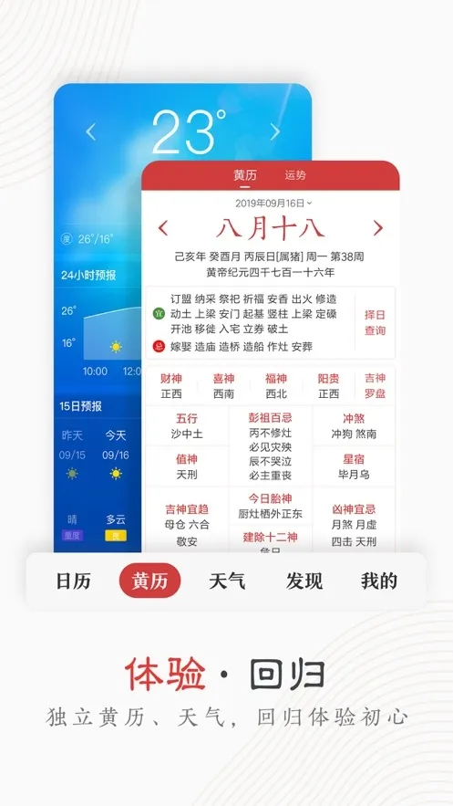 中华万年历最新版官方免费,集公农历对照、黄历查询、天气信息等多种功能于一体。以传统农历和黄历文化为基础,提供每日宜忌、节气节日等,还整合日程提醒、天气预报等,界面极简,功能丰富。