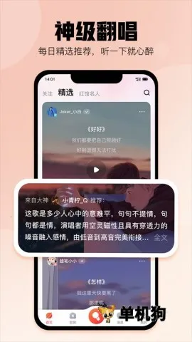 1. 汇聚大量优质翻唱,有众多K歌高手和有趣歌友,好声音等你来发现,随时能开启音乐派对。
