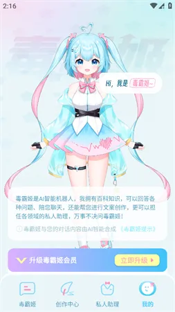 毒霸姬是一款很不错的软件哦。它有智能对话功能,闲暇时能陪你聊天,还能提供手机维护与安全保护服务。比如你有啥写作需求,它能帮你生成优质文稿。操作也简单,点击同意并使用按钮接受隐私协议,按住说话按钮就能语音提问,在功能卡中能找到写想象作文等选项。它的特色超多,有可互动的桌面宠物功能,能切换二次元形象;搭载人工智能对话系统,输入问题就有智能回复;内置写作助手,输入主题就能自动扩展成完整段落;还有众多虚拟历史名人可跨时空对话。优势也明显,能给你情感陪伴与信息支持,重视隐私安全,聊天由你主导,人工智能回复超棒。功能分区清晰,操作界面直观,各项任务轻松完成,能很好地满足你的各种需求,快来试试吧。