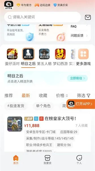 3. 功能丰富实用,支持便捷搜索,有对应游戏分类专区,还能卖闲置账号,适配各品牌手机。