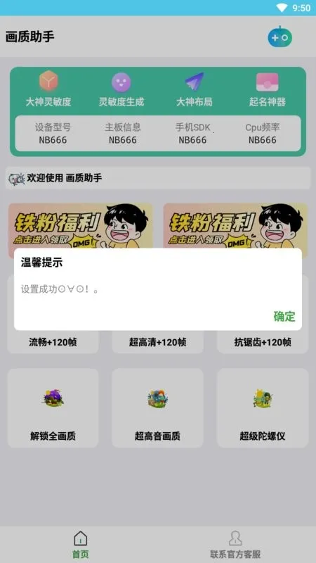 能帮助用户修复游戏闪退问题,自动获取大量设备信息,加快游戏运行速度,还支持灵敏度设置。