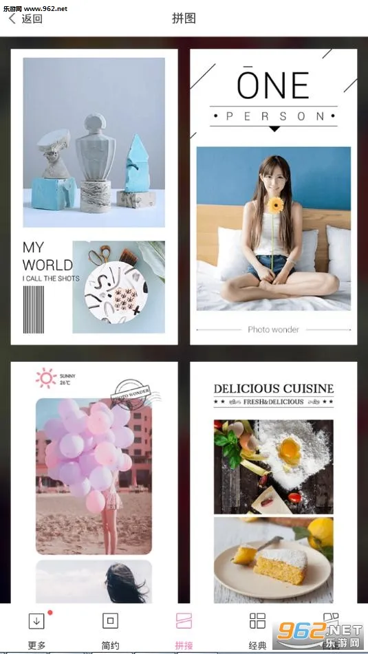 4. 提供多种拼图模式,模版拼图、自由拼图和图片拼接,还有丰富模版与清新背景助建个性图片墙。