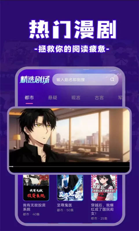 1、涵盖都市悬疑玄幻热血二次元喜剧等多种题材动态漫剧,满足各类用户追剧需求。