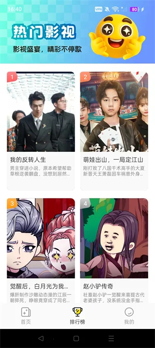 2、点击【排行榜】,不错过任何一部热门影视