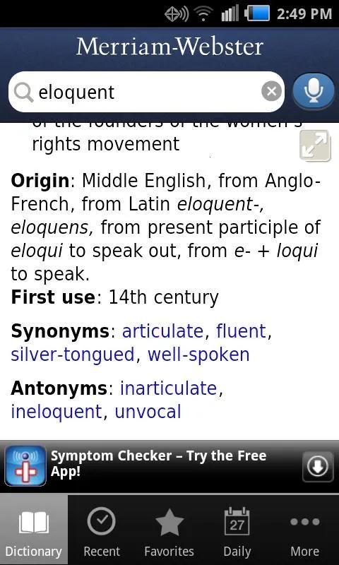1. 内容源自美国最具影响力的韦氏词典体系,全面收录单词释义、地道例句、同义词、反义词及详细用法说明,帮助用户精准掌握词汇在真实语境中的表达方式。