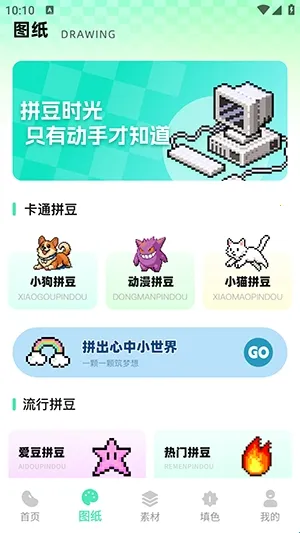 1、进入首页为大家提供了图片转拼豆、自由绘拼豆等功能。