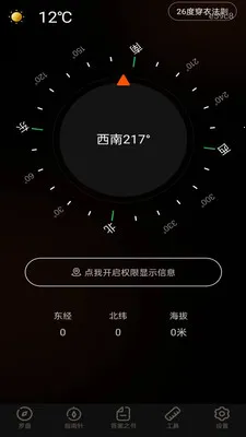 首页的专业罗盘和指南针能清晰显示多种信息,满足多元需求,非常实用。