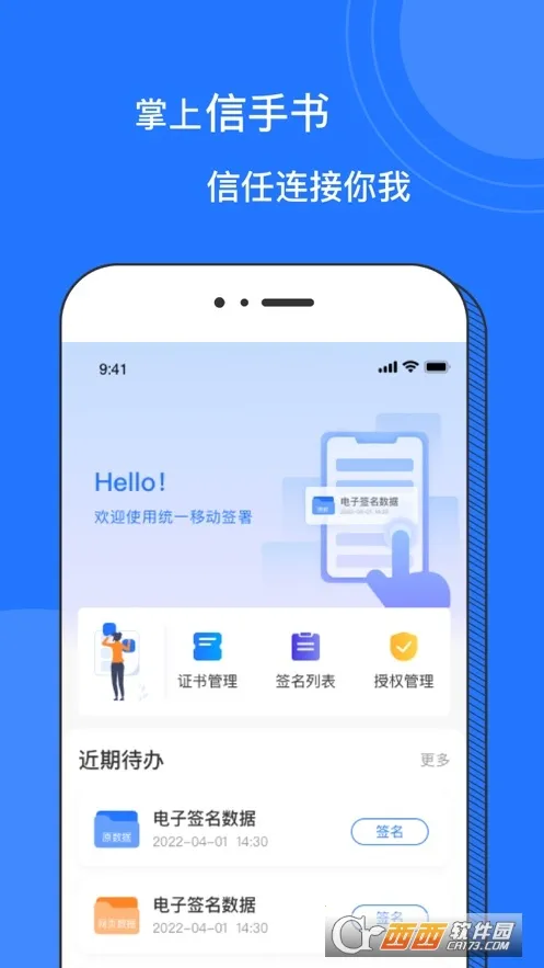 掌上信手书最新手机版由北京数字认证股份有限公司出品,权威性值得信赖。