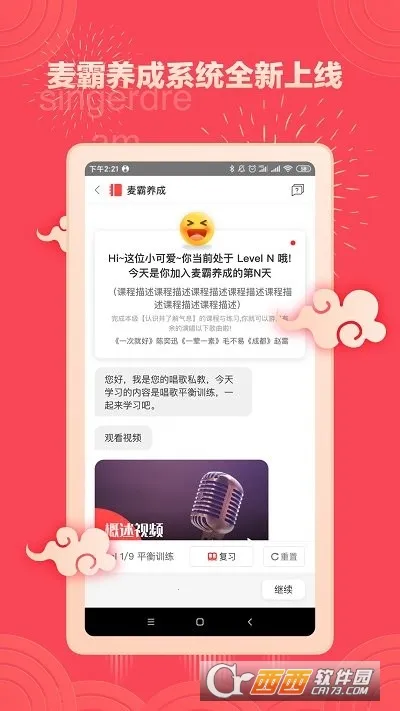 1. 九阶段麦霸养成,交互对话模拟一对一教学,专业老师审核,豪华考官护航,循序渐进助你成为麦霸。