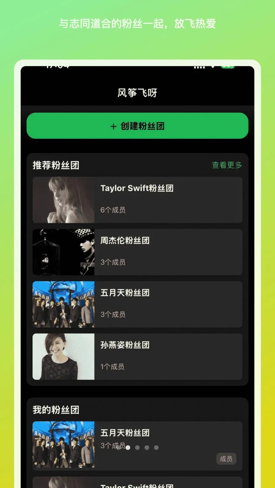 风筝飞呀2026官方正版是音乐同好社区,旋律起风乐随心动。1.1.9版本亮点多,能沉浸式探索艺人动态,有专属粉丝阵地,可记录音乐日记,参与线下活动,还有极致视觉体验。
