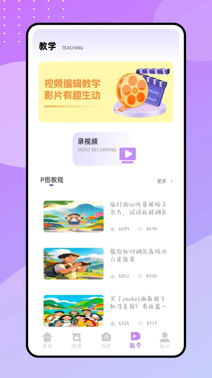 4、设有专属P图教程板块,零基础也能快速掌握调色、人像精修技巧,让照片出彩。