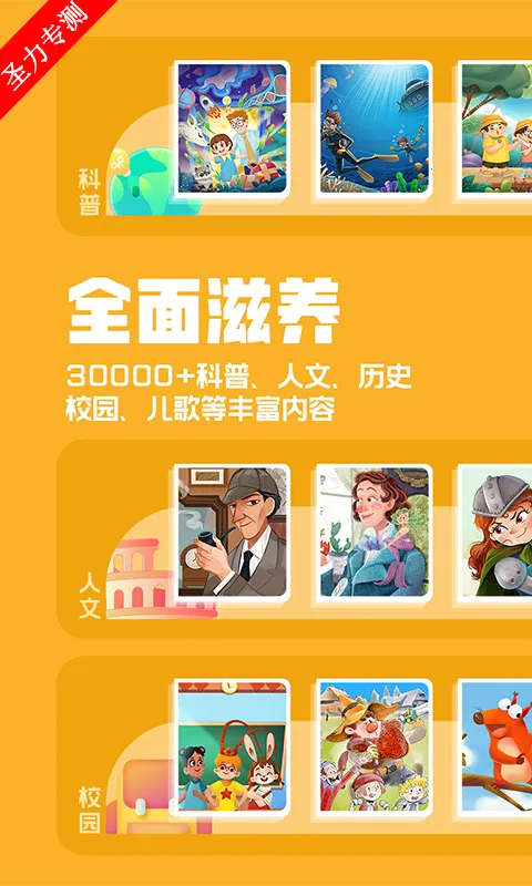 1. 海量故事随心选,涵盖自然科普、历史人文等多品类,30000 有声故事,1000 精品专辑,多场景陪伴孩子。