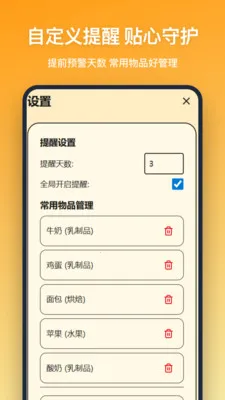 1. 界面简洁且机制智能,能助力高效管控各类物品保质期,杜绝过期浪费。