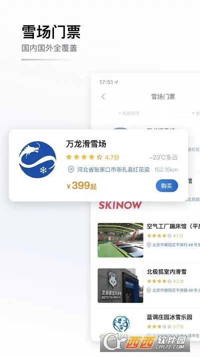 1. 能轻松在线购买实惠雪票,享受线下滑雪乐趣。