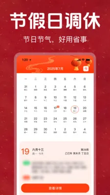 2. 提供节气节日及传统农历纪年信息,让用户全面了解日期背后丰富的文化内涵。