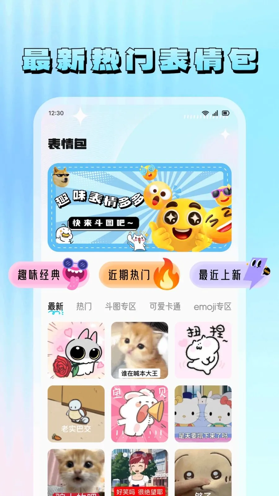 2. 海量热门表情包,风格齐全,助你斗图秒赢。