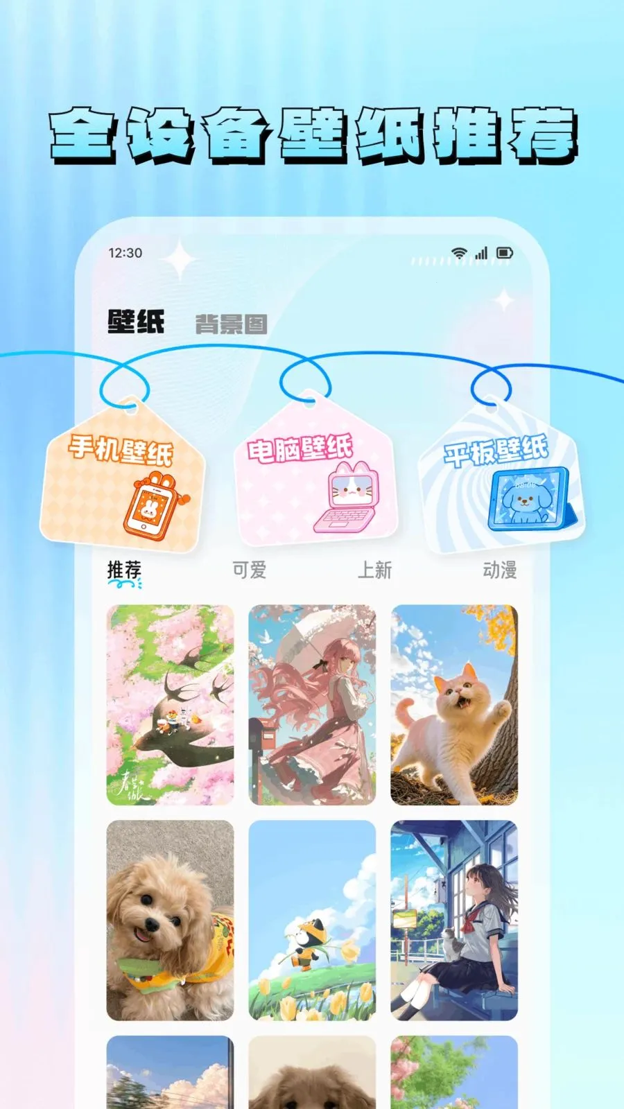 3. 全设备高清壁纸,多风格可选,动漫萌宠等应有尽有。