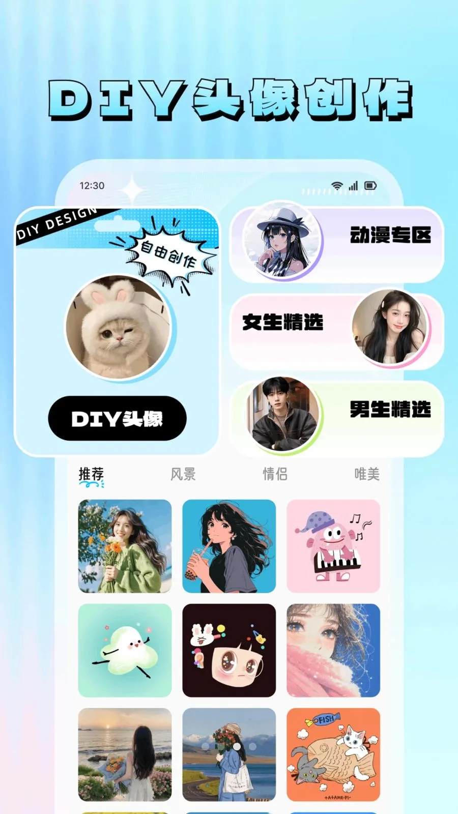 4. 高清无水印,可自由创作专属头像,丰富图库打造个性形象。