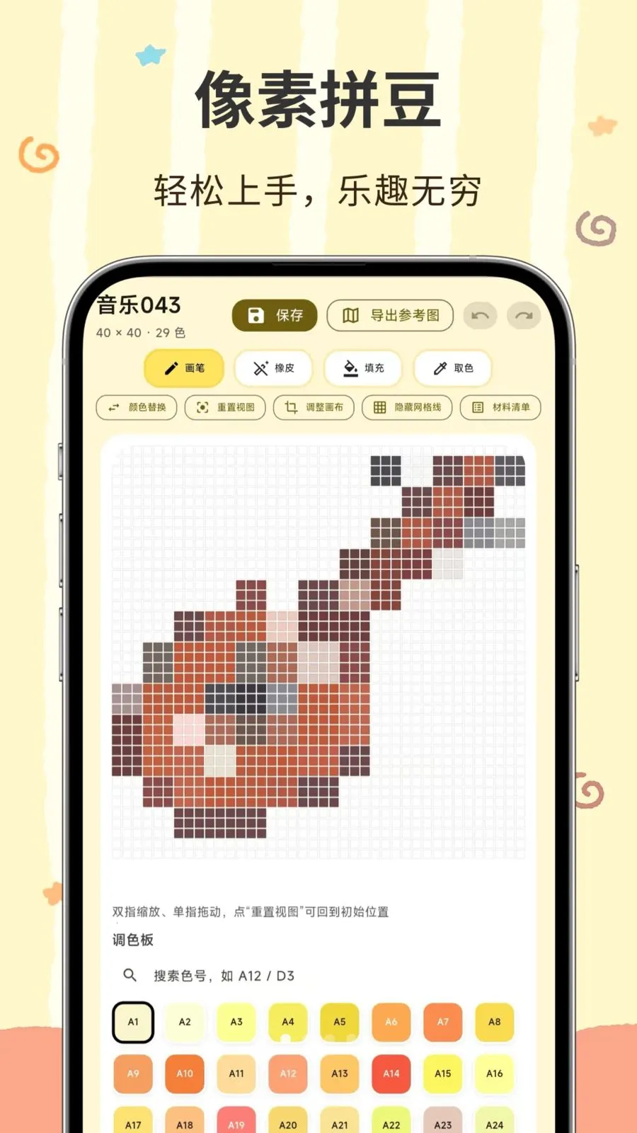 想知道像素匠app官方下载最新版本更新了啥?快来瞧一瞧!这可是超棒的拼豆创作工具。海量模板超丰富,涵盖日常植物、建筑等多品类,直接选图就能开始创作,哪怕是新手也能轻松上手。专业创作方面,画笔、填充、取色等工具一应俱全,还支持导出参考图,让你自由创作毫无压力。智能库存功能超贴心,能统计缺豆数量,管理豆子库存,告别缺豆停工的烦恼。随时随地都能进行像素创作,在拼豆过程中放松身心,收获满满成就感。新版本可能还有新产品上架哦!不管你是想发挥创意,还是找个解压方式,像素匠app都能满足你。赶紧去官方下载最新版本,体验全新的拼豆创作乐趣吧!