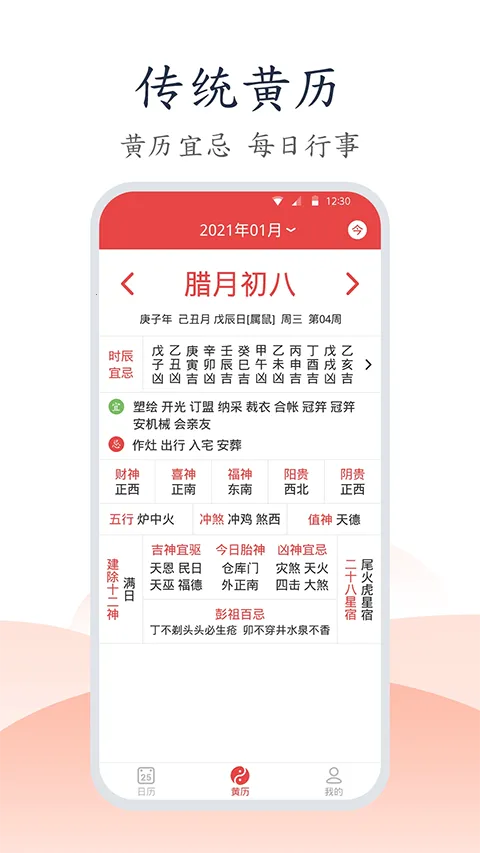 提供公历农历天气黄历等实用功能,黄历信息丰富,生活提示贴心。