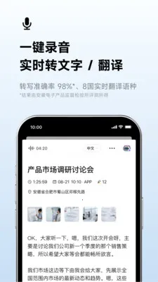 讯飞听见是一款超实用的APP,能帮你解决信息记录处理的大难题。它就像你的随身AI语音记录助手,在会议、演讲、学习、采访等各种场景都能大显身手。只要打开APP开始录音,它就能实时把语音转为文字,还支持24种语言自由转写,准确率高达98%,多语种实时翻译也不在话下,8国语言随心互译。录音时能随时重点标记、拍照辅助,间隙还能随想随记添加批注。结束后无需手动整理,文本自动区分角色、划分段落,支持字音同步编辑,AI智能总结归纳,语篇规整,快速生成全文摘要,还能多格式分享。不管是职场人士记录会议、记者律师整理采访、老师学生处理课程内容,还是作家学者捕捉灵感,它都能完美适配,让信息传递高效又轻松,开启智能办公学习新篇章,赶紧来体验吧!